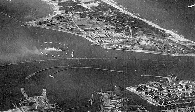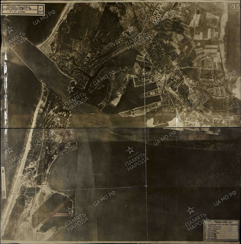 Аэросъемка косы Фрише Нерунг и Пиллау в октябре 1944 года.