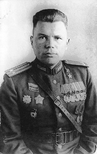 генерал-майор, командир 5 гв.сд, 25 – 27.04.1945 г. умело управлял дивизией при форсировании пролива Зее-Тиф и боем на косе Фрише Нерунг.