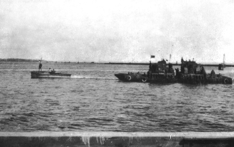 Форсирование морского канала. Высадка на автомобилях-амфибиях. Пролив Зее-Тиф, Пиллау, 1945