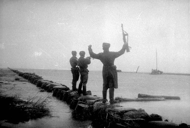 Советские бойцы-гвардейцы на заливе Фрише Нерунг после разгрома противника.