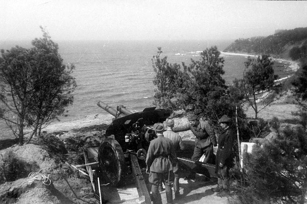 Позиции немецкой береговой батареи на косе Фрише Нерунг.