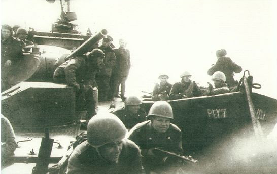 Первыми форсировали пролив Зее-Тиф и высаживались на 5-ти автомобилях-амфибиях, рядом с ангарами – 120 гвардейцев 3-го стрелкового батальона 17-го гвардейского стрелкового полка под командованием гвардии майора А.В. Дорофеева.
