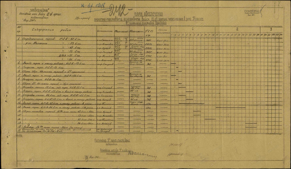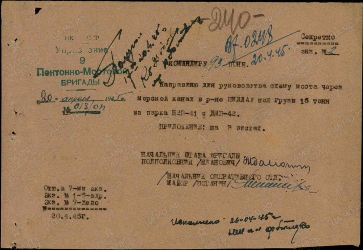 План обеспечения понтонно-мостовой переправы через морской канал Пиллау. 19.04.1945