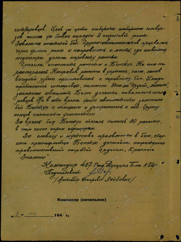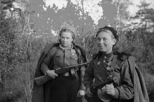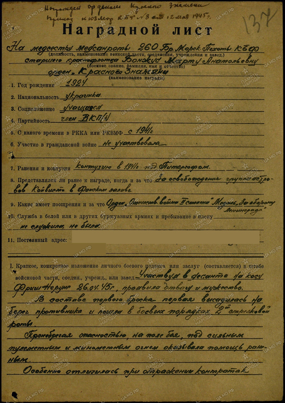 В составе Восточного десанта были и девушки. Медсестра М.А. Бонжус защищала раненых, отбиваясь гранатами и отстреливаясь из автомата.