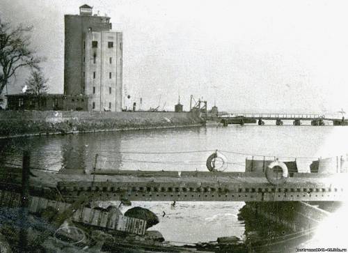 Два наплавных моста под грузы 16т через морской канал, наведённые силами 37, 57, 60 мпмб 9пмбр. Пиллау, 4.1945.2